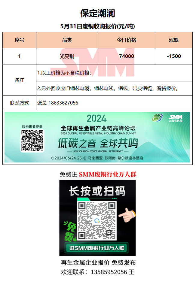 今日保定潮澜 废铜采购报价已更新,有货的朋友欢迎联系我们!