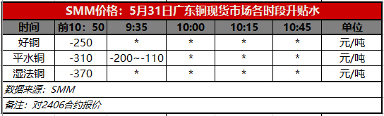 5月31日广东铜现货市场各时段升贴水(第一时段9:30)【SMM价格】