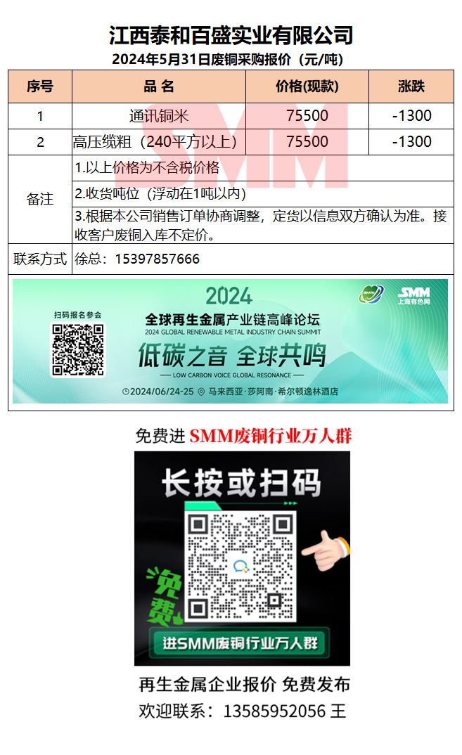 5月31日江西泰和 废铜采购报价