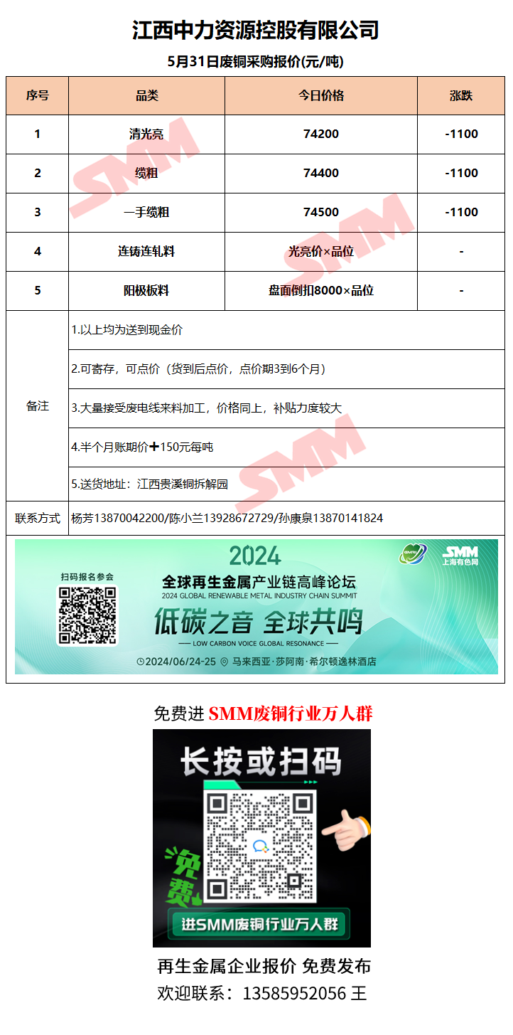 今日江西中力 废铜采购报价已更新,有货的朋友欢迎联系我们!
