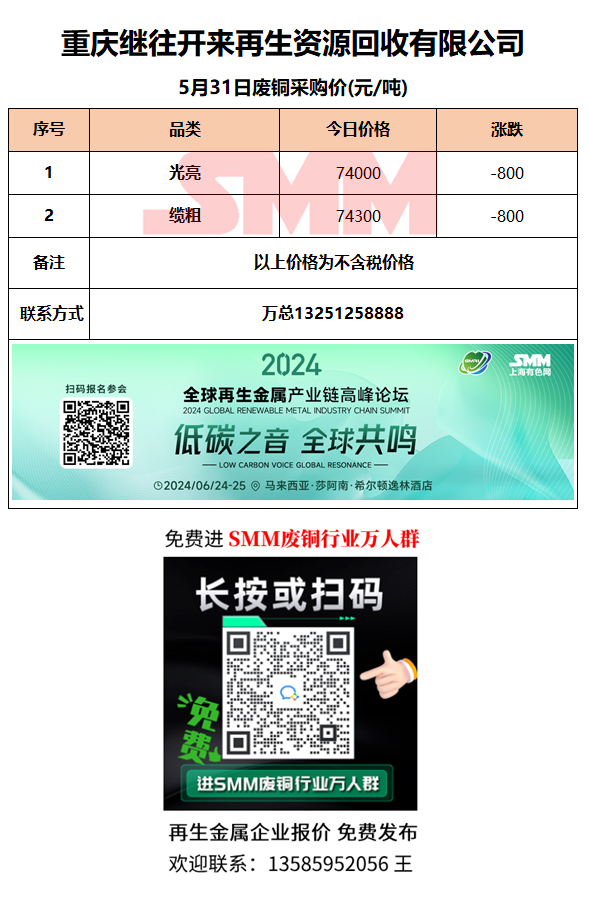 今日重庆继往开来 废铜采购报价已更新,有货的朋友欢迎联系我们!
