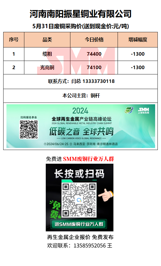 今日南阳振星 废铜采购报价已更新,有货的朋友欢迎联系我们!