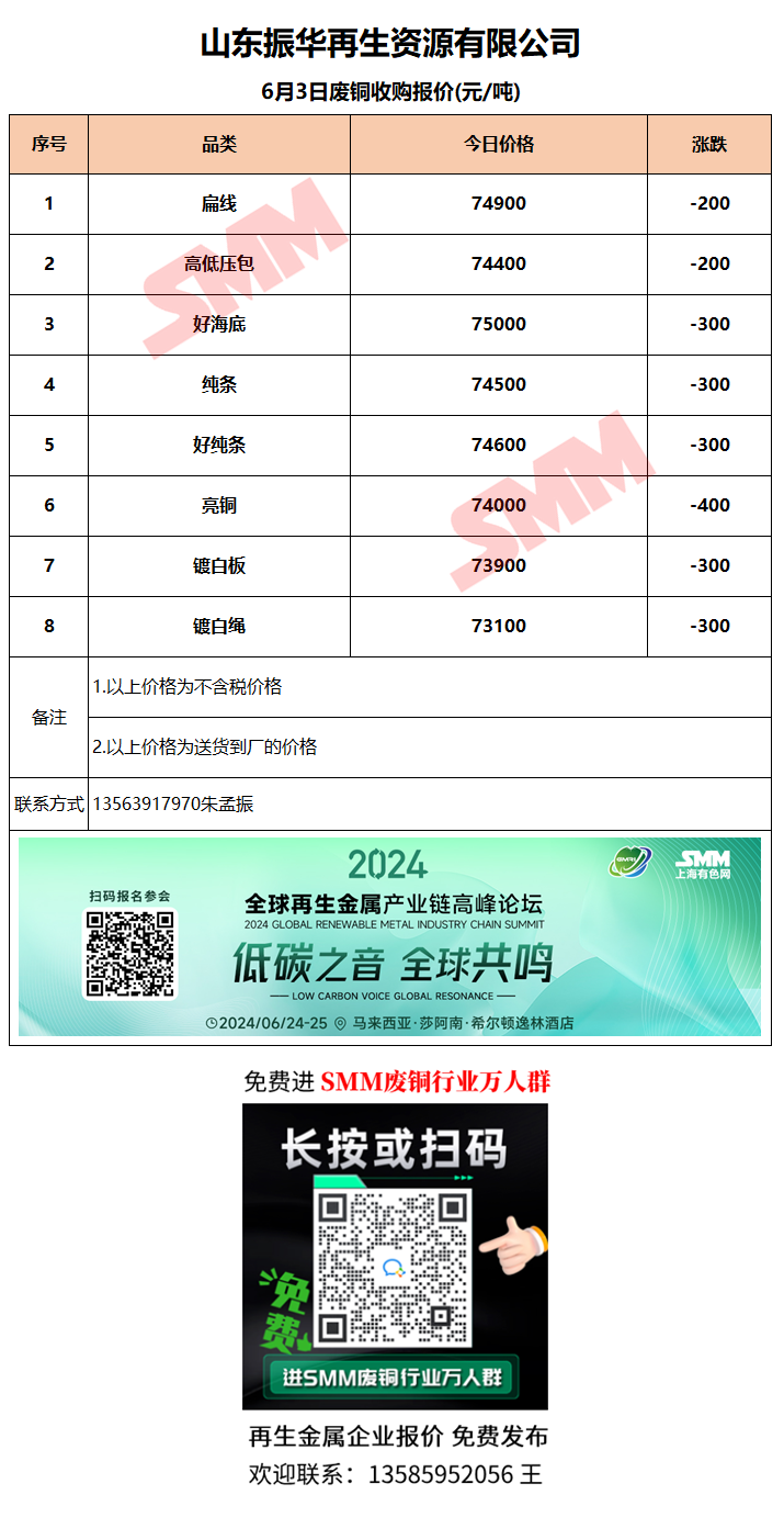 今日山东振华 废铜采购报价已更新,有货的朋友欢迎联系我们!