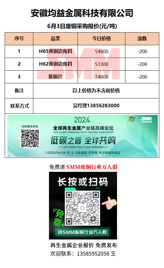 今日安徽均益 废铜采购报价已更新,有货的朋友欢迎联系我们!