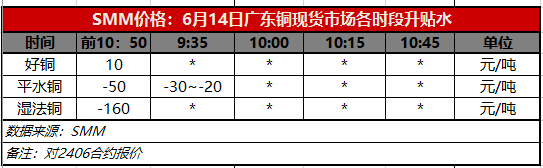 6月14日广东铜现货市场各时段升贴水(第一时段9:30)【SMM价格】