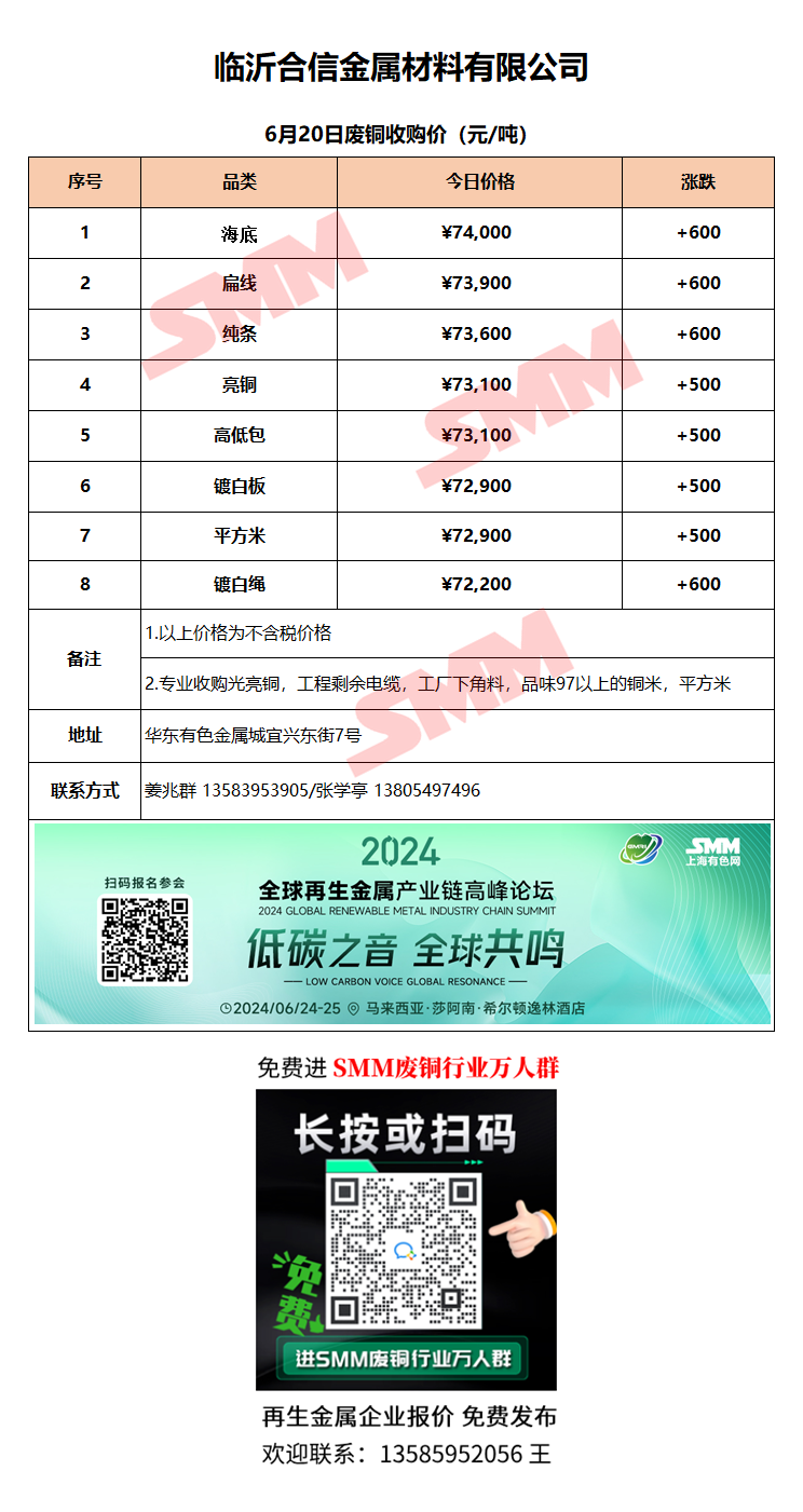 今日临沂合信金属 废铜采购报价已更新,有货的朋友欢迎联系我们!