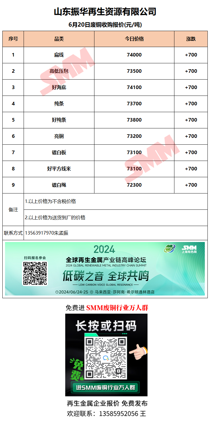 今日山东振华 废铜采购报价已更新,有货的朋友欢迎联系我们!