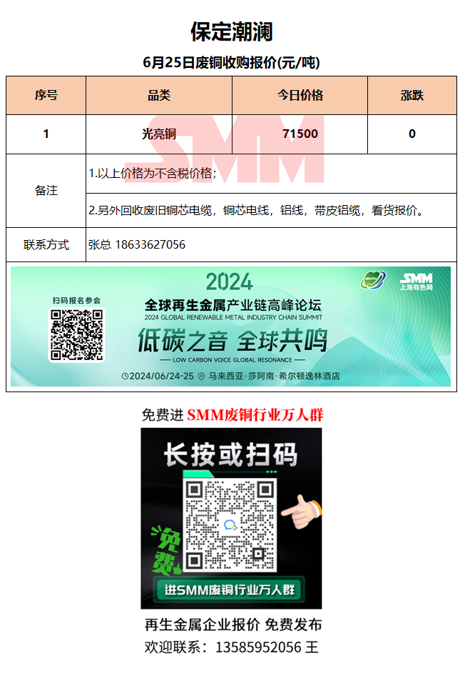 今日保定潮澜 废铜采购报价已更新,有货的朋友欢迎联系我们!