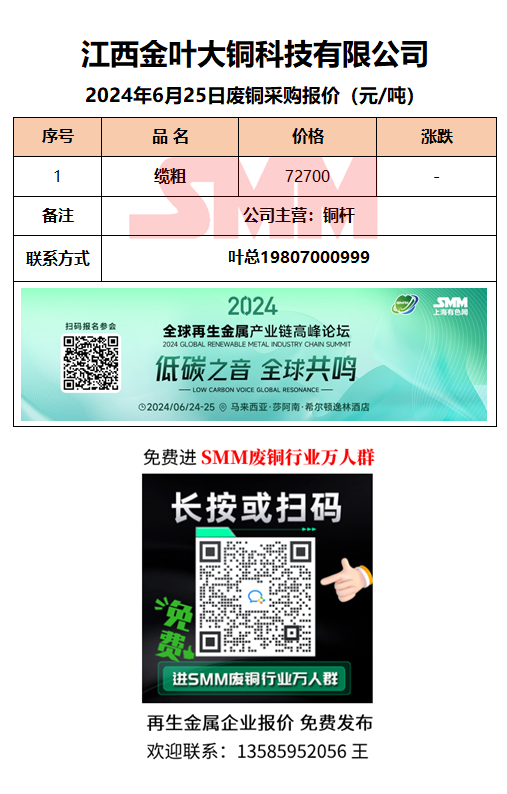 6月25日江西金叶大铜 废铜采购报价