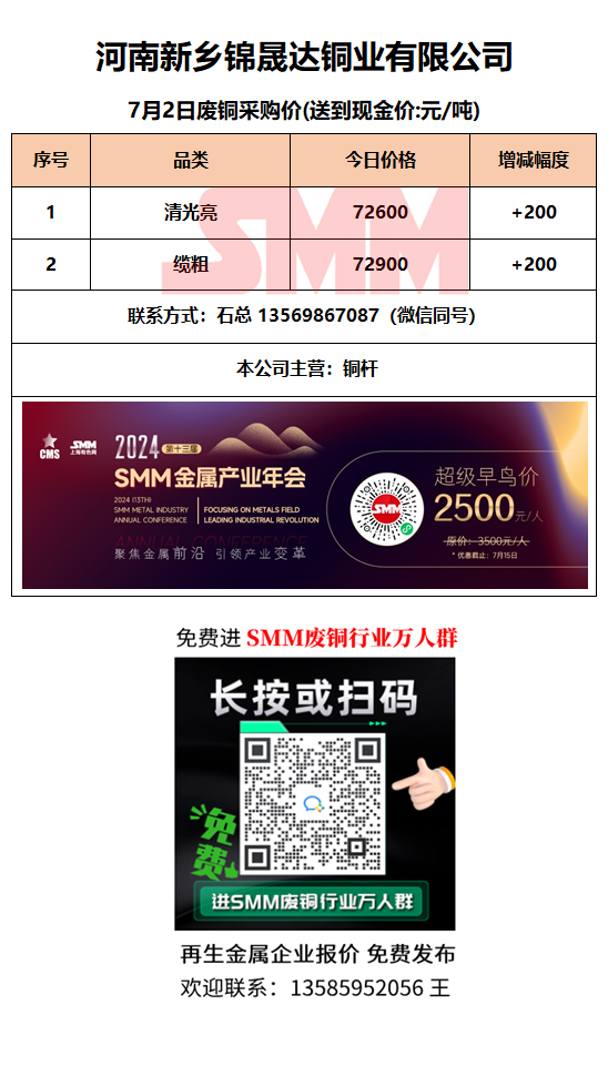 7月2日河南锦晟达 废铜采购报价