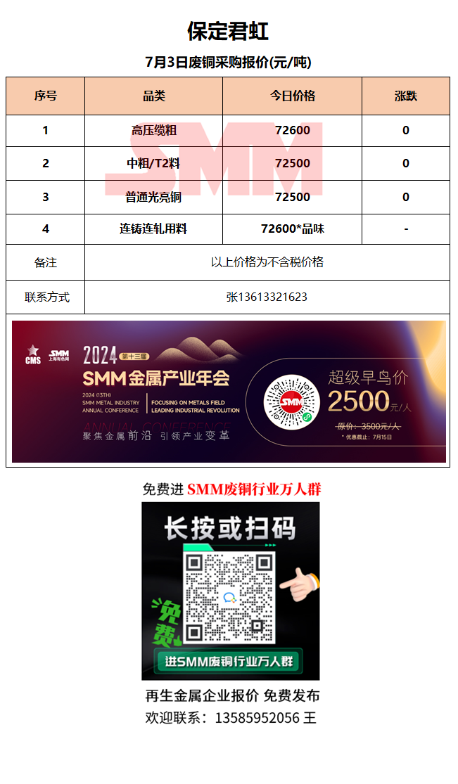 今日保定君虹 废铜采购报价已更新,有货的朋友欢迎联系我们!