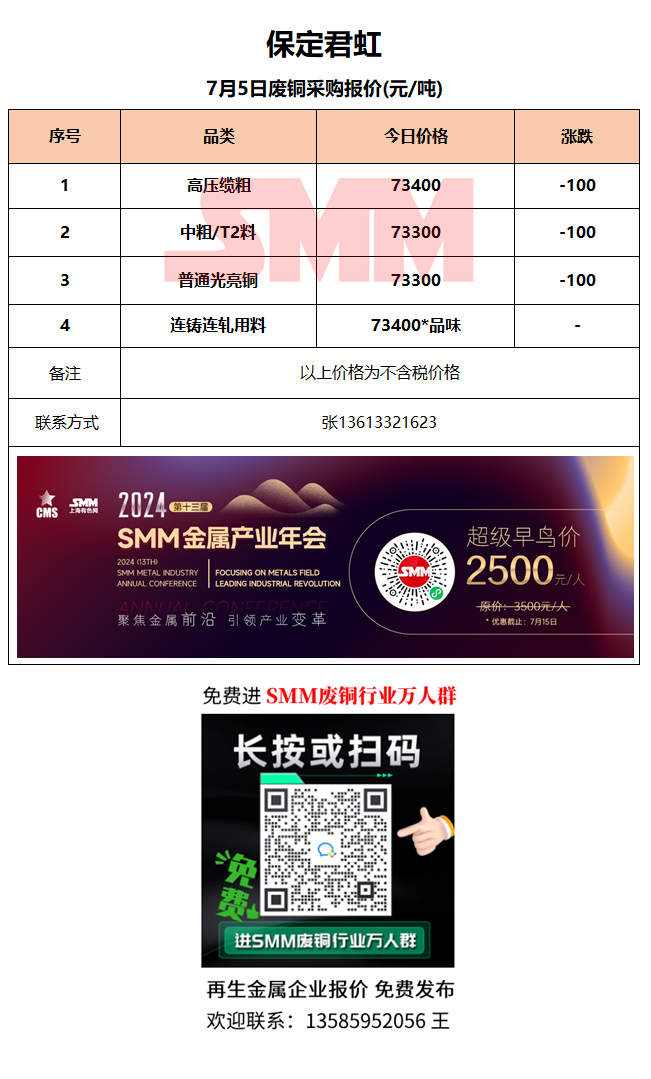 今日保定君虹 废铜采购报价已更新,有货的朋友欢迎联系我们!