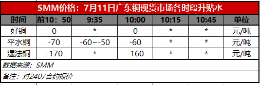 7月11日广东铜现货市场各时段升贴水(第二时段10:00)【SMM价格】