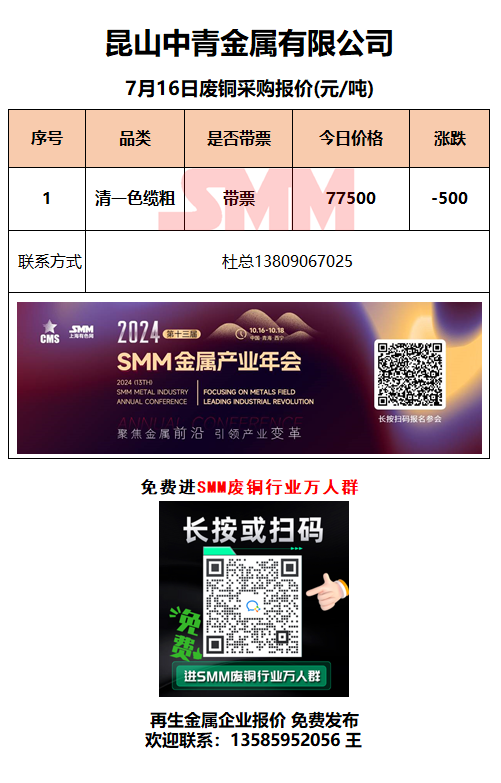 今日昆山中青 废铜采购报价已更新,有货的朋友欢迎联系我们!