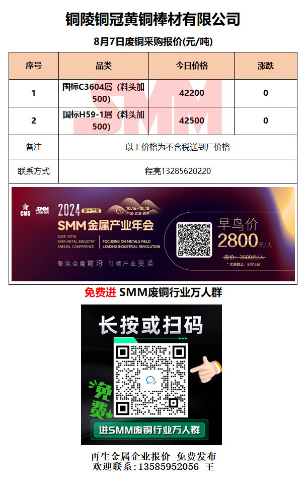 8月7日铜陵铜冠 废铜采购报价