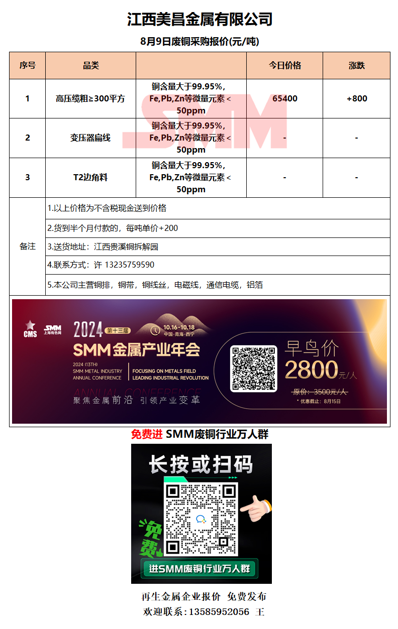 今日江西美昌 废铜采购报价已更新,有货的朋友欢迎联系我们!