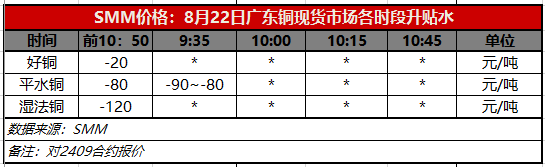 8月22日广东铜现货市场各时段升贴水(第一时段9:30)【SMM价格】