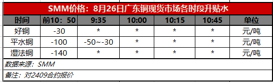 8月26日广东铜现货市场各时段升贴水(第一时段9:30)【SMM价格】