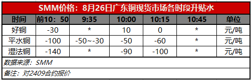 8月26日广东铜现货市场各时段升贴水(第三时段10:15)【SMM价格】