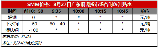 8月27日广东铜现货市场各时段升贴水(第一时段9:30)【SMM价格】
