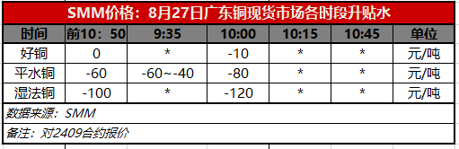 8月27日广东铜现货市场各时段升贴水(第二时段10:00)【SMM价格】