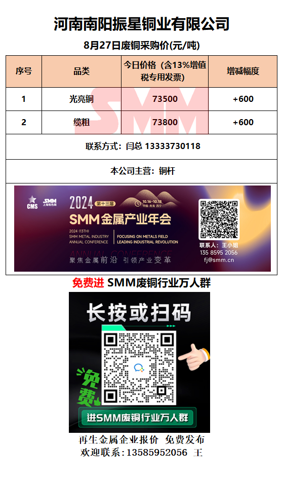 8月27日南阳振星 废铜采购报价