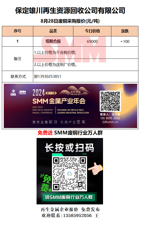 8月28日保定雄川 废铜采购报价