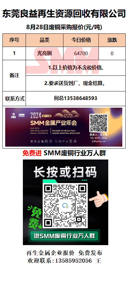 8月28日东莞良益 废铜采购报价
