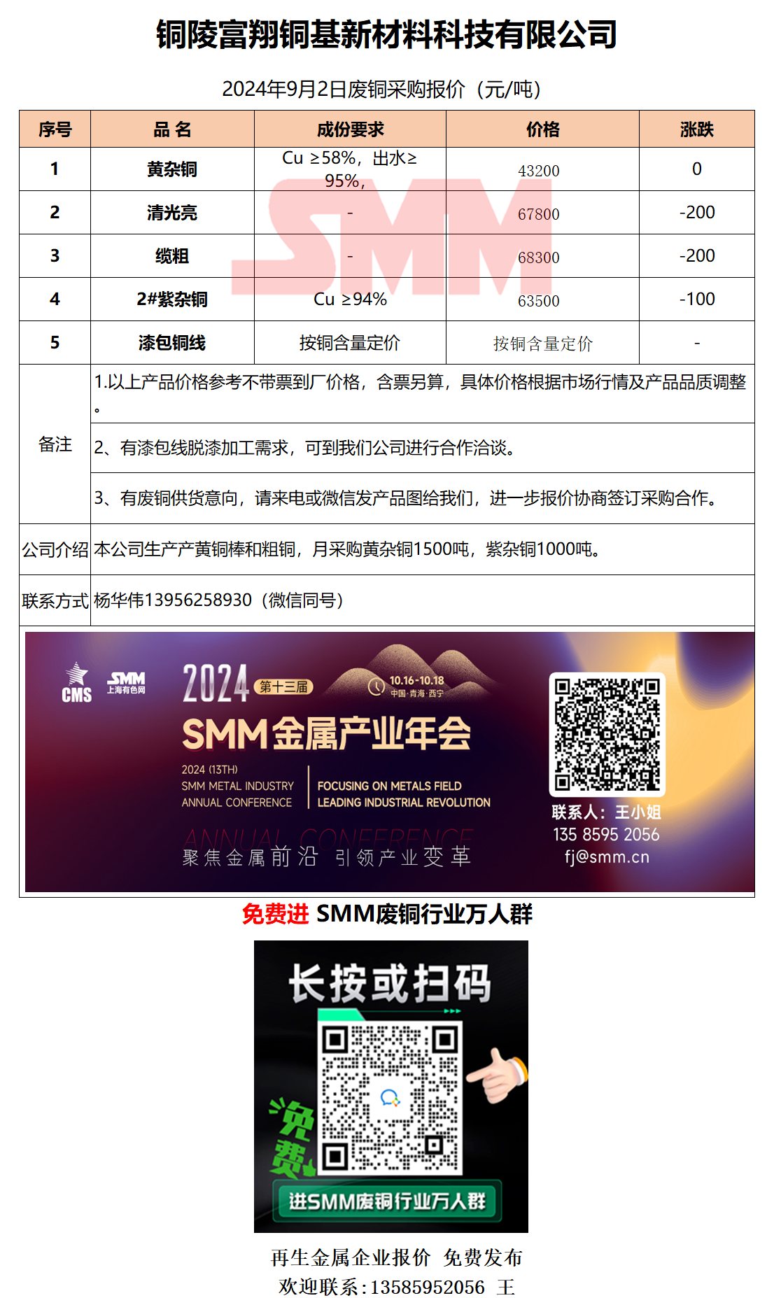 9月2日铜陵富翔 废铜采购报价