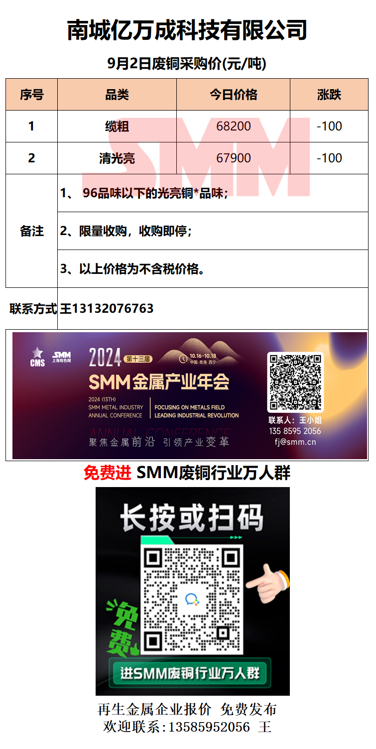 9月2日江西亿万成 废铜采购报价