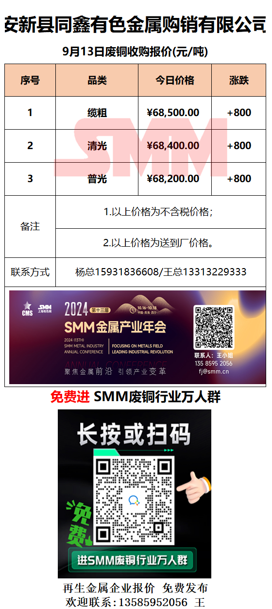 今日安新同鑫 废铜采购报价已更新,有货的朋友欢迎联系我们!