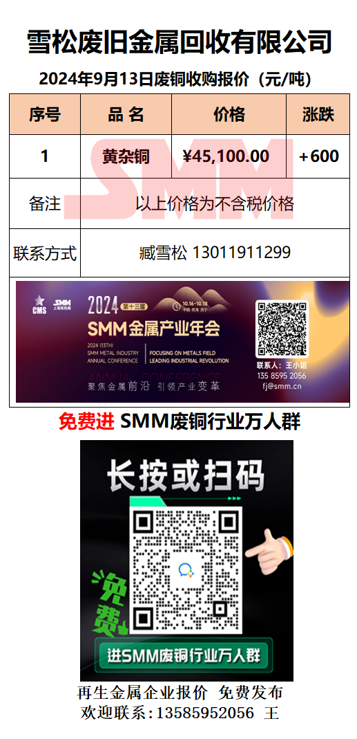9月13日雪松废旧 废铜采购报价