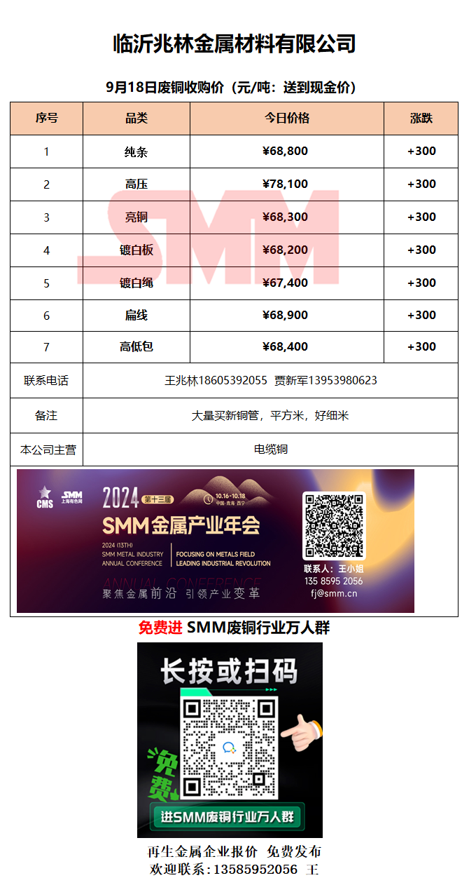 今日临沂兆林金属 废铜采购报价已更新,有货的朋友欢迎联系我们!