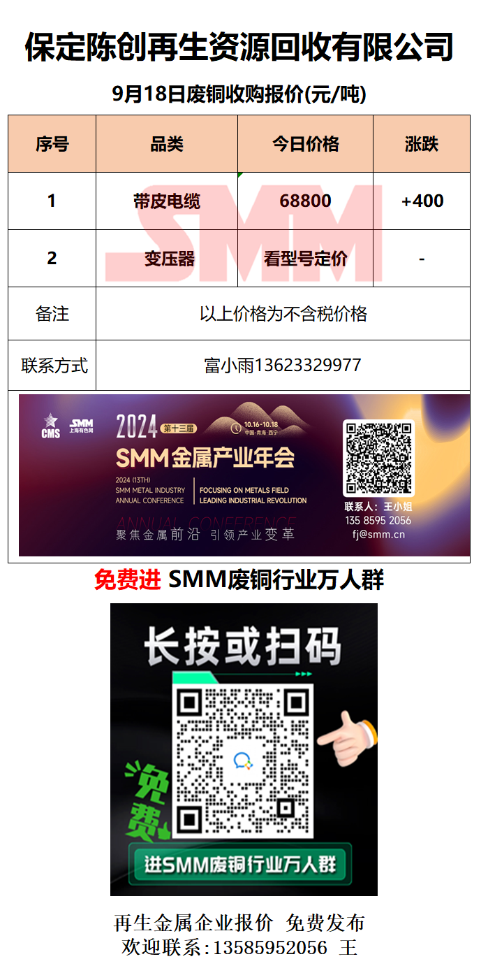 今日保定陈创 废铜采购报价已更新,有货的朋友欢迎联系我们!