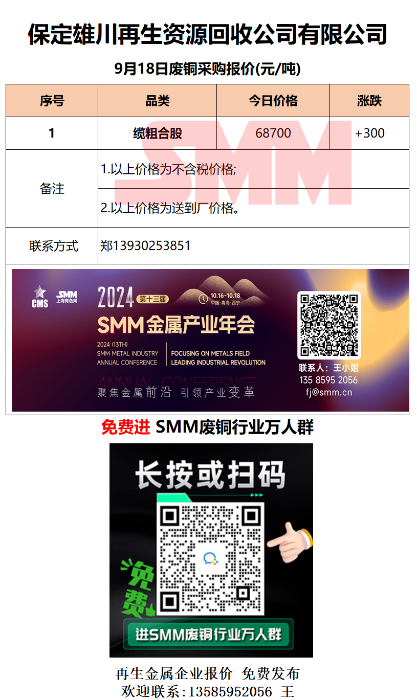 今日保定雄川 废铜采购报价已更新,有货的朋友欢迎联系我们!