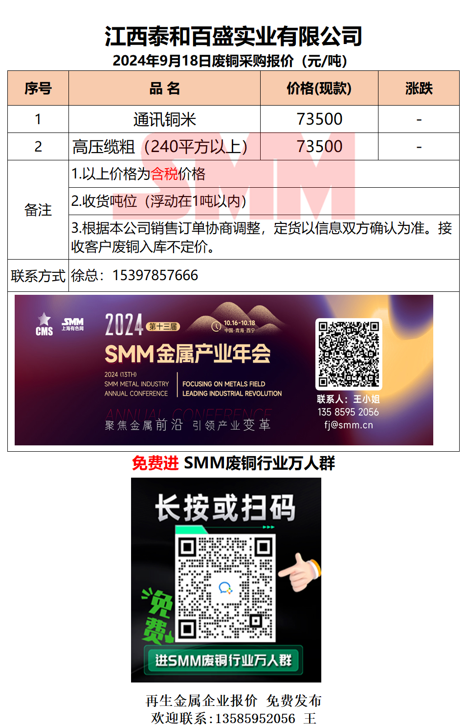今日江西泰和 废铜采购报价已更新,有货的朋友欢迎联系我们!