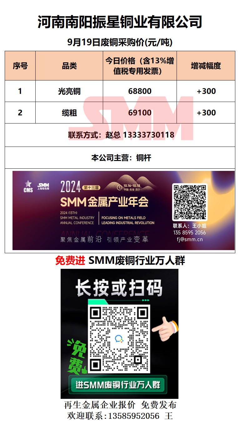 今日南阳振星 废铜采购报价已更新,有货的朋友欢迎联系我们!