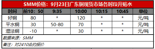 9月23日广东铜现货市场各时段升贴水(第二时段10:00)【SMM价格】