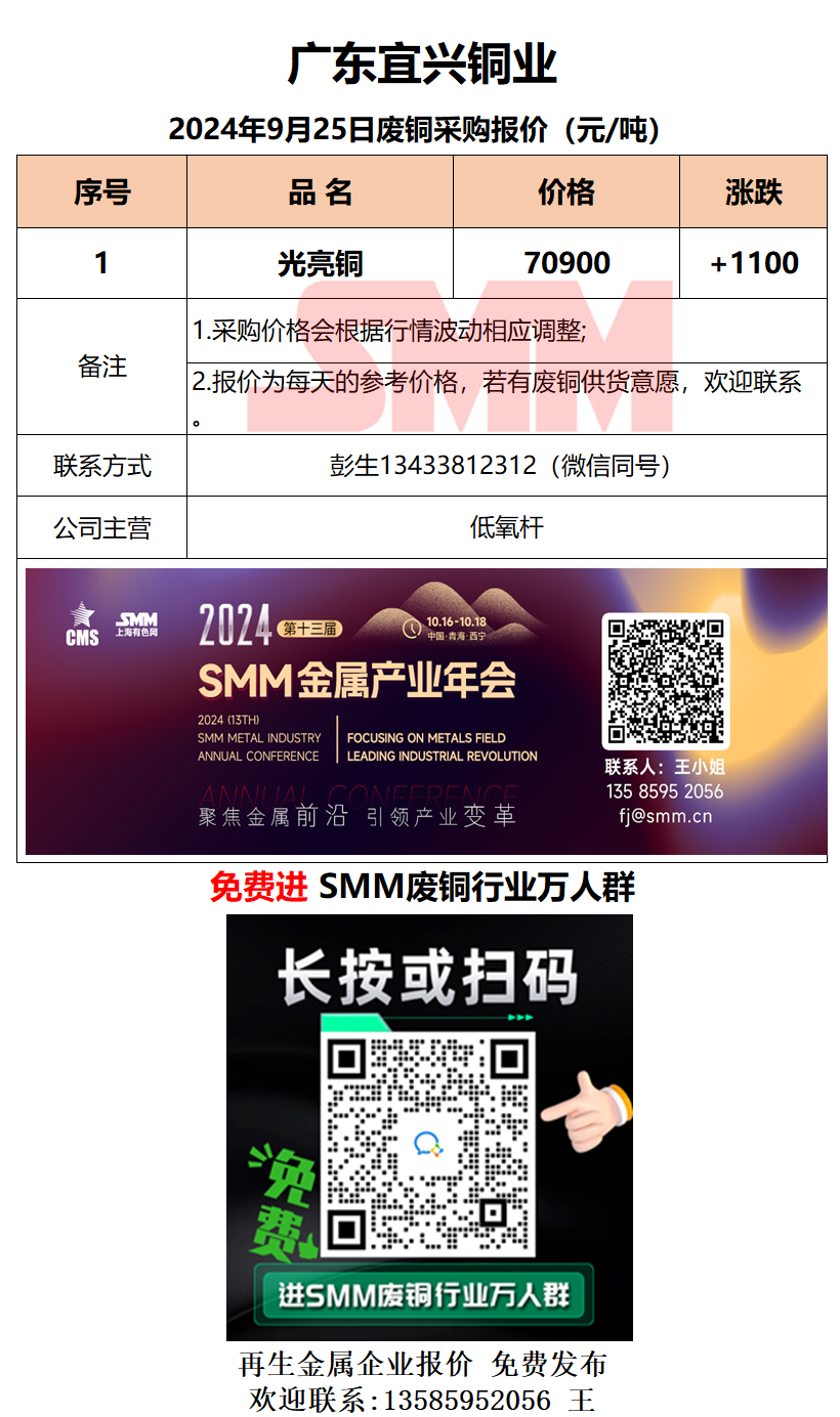 9月25日广东宜兴 废铜采购报价
