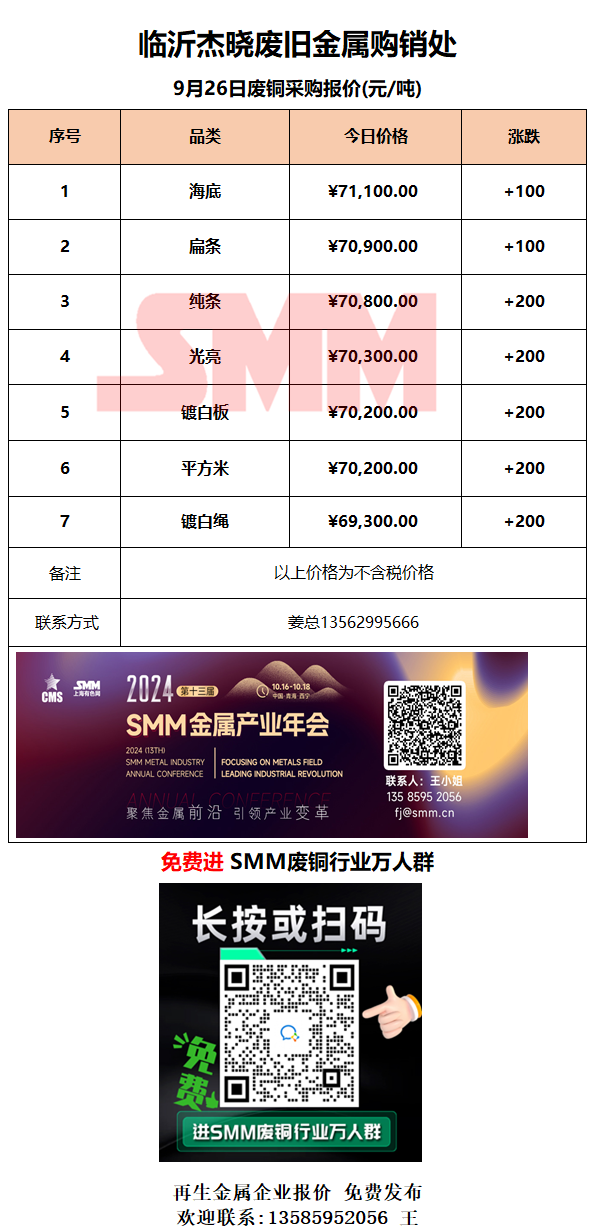 9月26日临沂杰晓 废铜采购报价