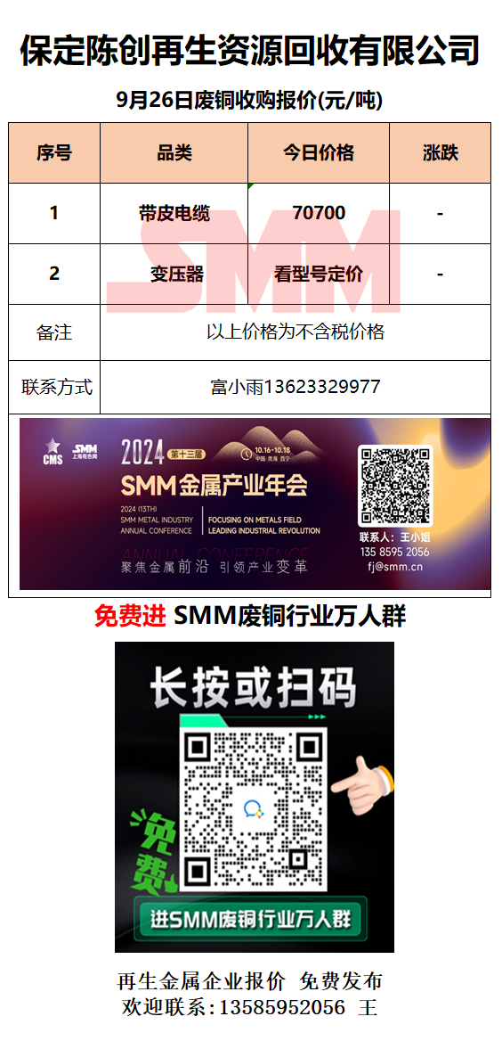 今日保定陈创 废铜采购报价已更新,有货的朋友欢迎联系我们!