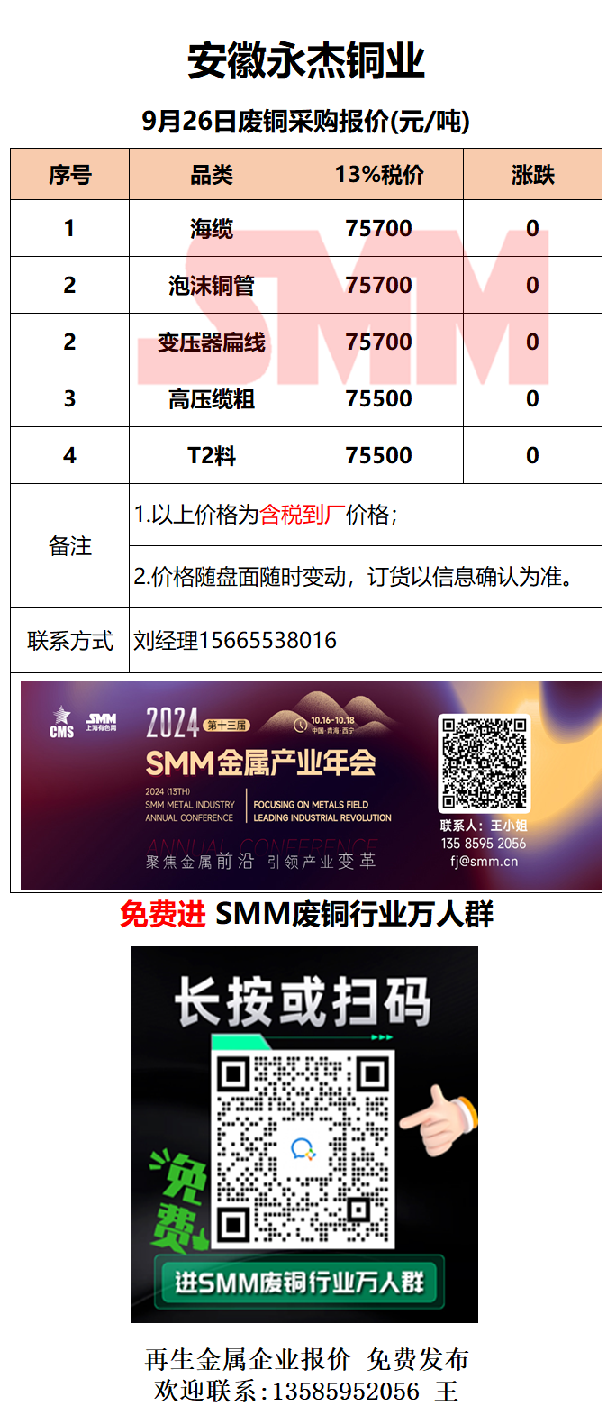 今日安徽永杰 废铜采购报价已更新,有货的朋友欢迎联系我们!