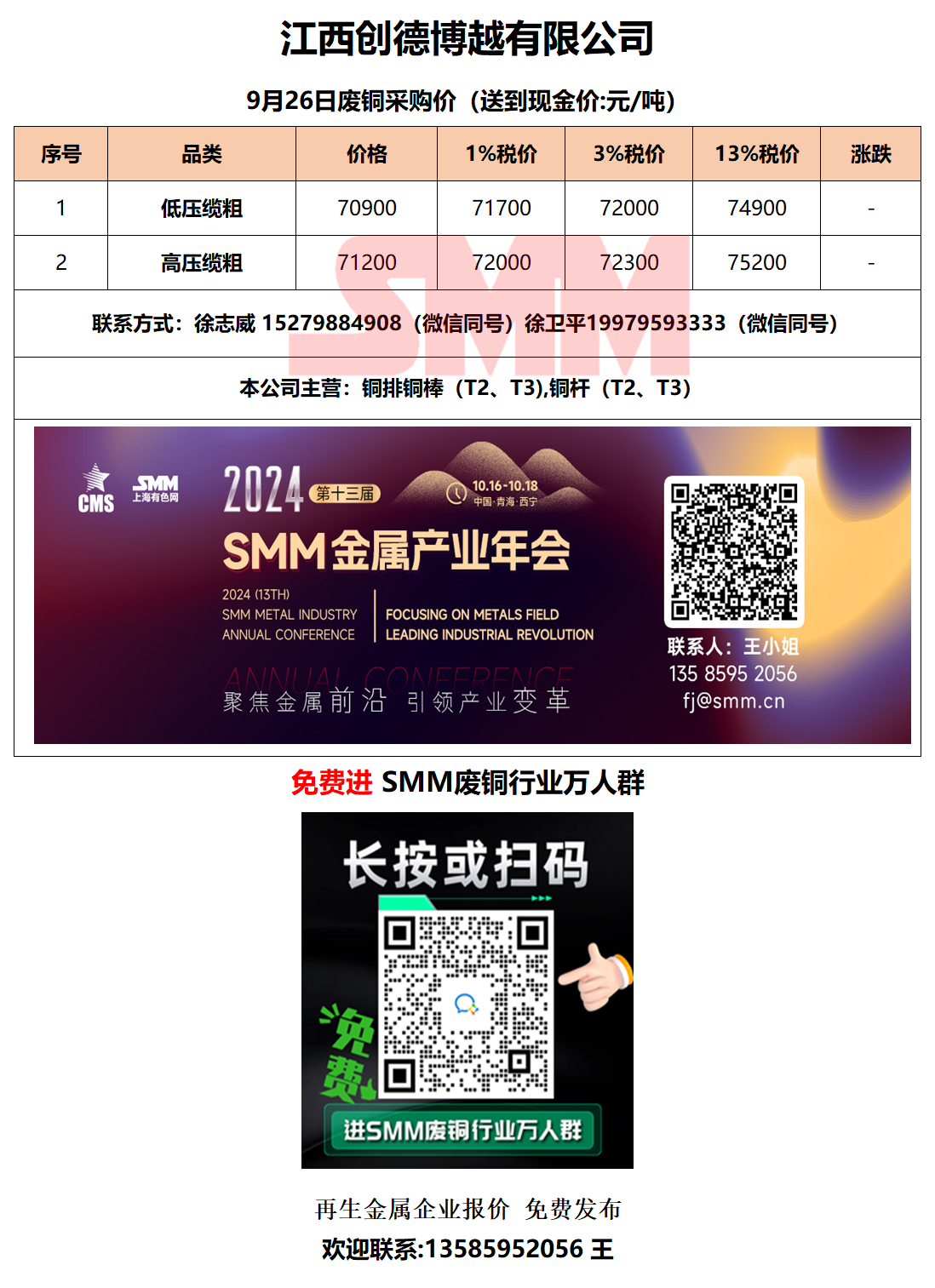 今日江西创德博越 废铜采购报价已更新,有货的朋友欢迎联系我们!
