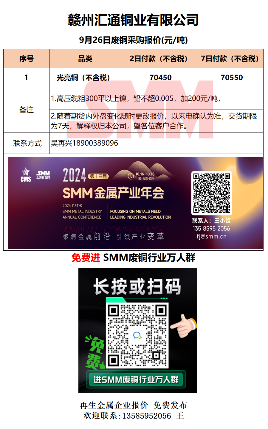 今日赣州汇通 废铜采购报价已更新,有货的朋友欢迎联系我们!