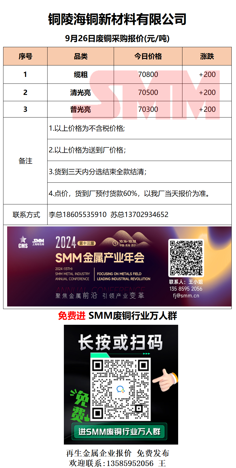 今日铜陵海铜 废铜采购报价已更新,有货的朋友欢迎联系我们!