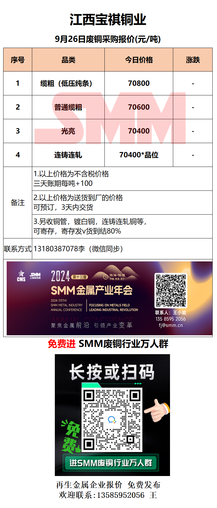 今日江西宝祺 废铜采购报价已更新,有货的朋友欢迎联系我们!