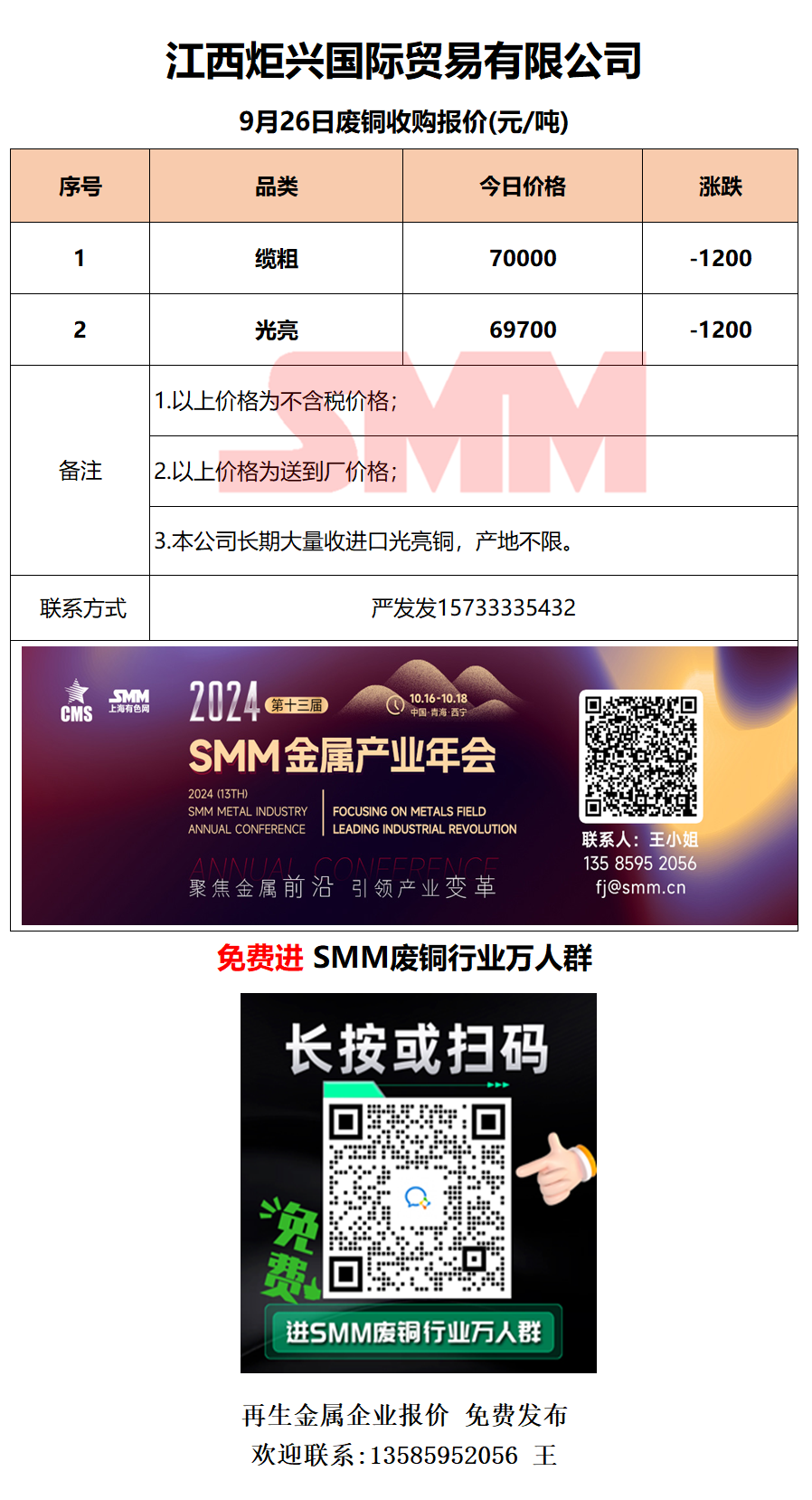 今日江西炬兴 废铜采购报价已更新,有货的朋友欢迎联系我们!