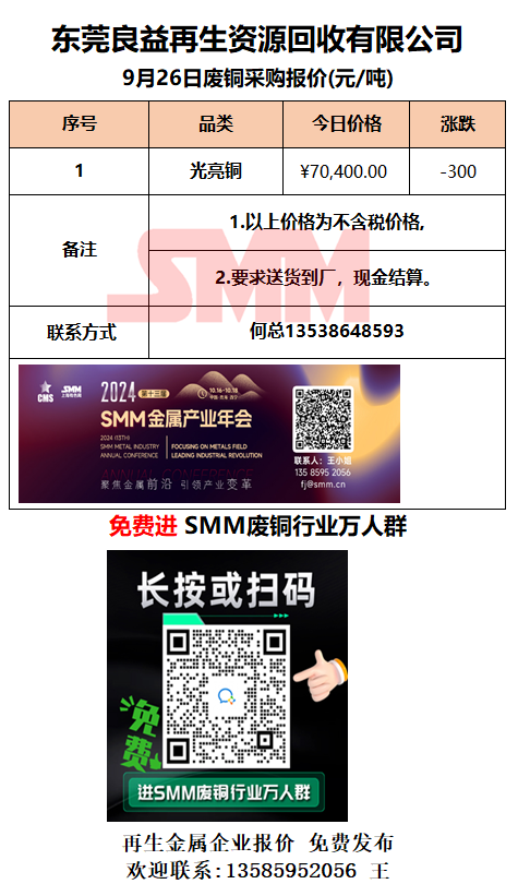 9月26日东莞良益 废铜采购报价