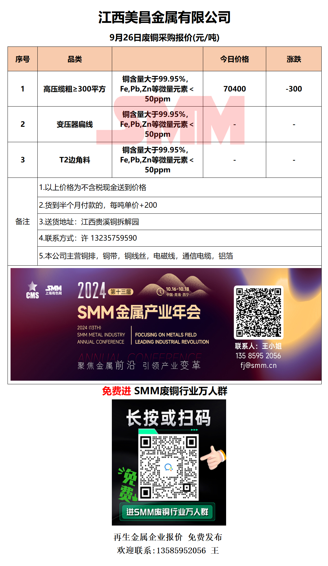 今日江西美昌 废铜采购报价已更新,有货的朋友欢迎联系我们!