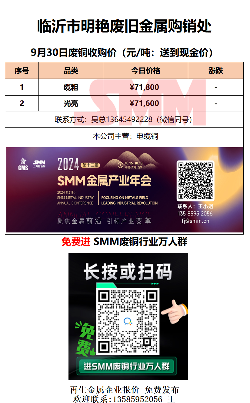9月30日临沂明艳废旧金属 废铜采购报价